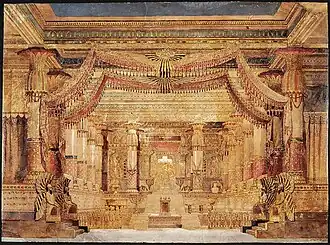 In 1863, he was appointed a decorative artist for the Vienna State Opera.[1] The following year, he became a partner in the studios of Carlo Brioschi. Two years later the Viennese Court Painter, Hermann Burghart, was added to the partnership, creating the firm of "Brioschi, Burghart und Kautsky, k.u.k. Hoftheatermaler in Wien", which employed dozens of carpenters, blacksmiths, mechanics and clerks in addition to their painters; among whom were Georg Janny, Leopold Rothaug, Ferdinand Brunner and Alfons Mucha. The studio received many orders from abroad as well as locally. Among their regular customers was the Metropolitan Opera in New York.