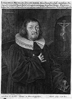 Johann Michael Dilherr (14 October 1604 - 8 April 1669) was a German Protestant theologian and philologist at the universities of Jena and Atldorf (Nuremberg).[1][2]