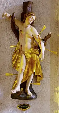 Between 1738 and 1741, he created figures of the Twelve Apostles and St. Paul for the high altar in the new parish church at St. Margarethe Monastery.[3] Later, the altar was remodeled to reflect the popular Rococo style, but his figures were left intact. They are among the few sculptures he created in stucco, rather than wood.[4]