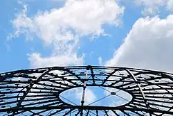 Called in by the Imperial Continental Gas Association in 1863 to replace a failed roof over a telescoping gas holder, Schwedler devised a workable solution but thinking further about the problem, in 1866 published an article describing a new type of iron cupola that was simpler, lighter, and as sturdy:[21] it takes the form of an unsupported spheroidal steel vault, rather than beams, and was normally used to span distances of 25–45 m.[22][23] He used Schwedler cupolas in designing four new gas holders for Berlin's street lighting, of which the one now known as the Fichte-Bunker (1874) survives,[24][25] and the only deterrent to their use today is the cost of labour.[23][26] He designed the cupolas on Berlin's New Synagogue (1863)[12][27] and the Sedan Panorama at Alexanderplatz Station.[28]