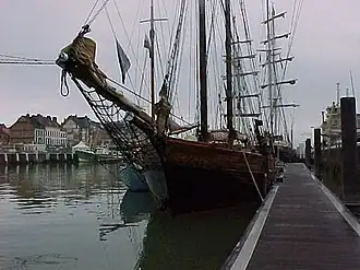 The Johanna Lucretia is a British tall ship and is an oak wooden two masted topsail schooner built at the Rhoos Shipyard, Ghent in Belgium in 1945. The Johanna Lucretia measures 96 ft (28.65m) in length, her beam is 18 ft (5.50m), her draught is 8 ft (2.45m) and she has a total sail area of 380 m2.