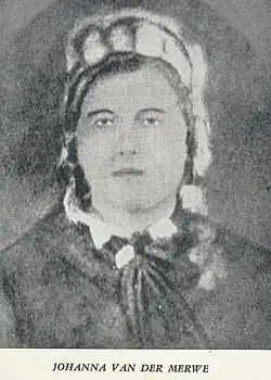 Johanna Cornelia van der Merwe (7 March 1825 – 15 January 1888) was a Voortrekker heroine who survived the Weenen massacre, an impi attack on her trekking party on 17 February 1838, despite suffering more than twenty assegai wounds.