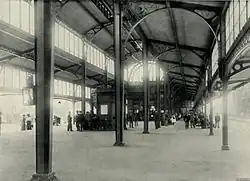 With the increase in passenger numbers, there was need for a new station. In May 1897 the ZAR upgraded Park Halt after they had purchased a steel and glass building from the Netherlands.[4]: 7 The building had been part of the Amsterdam Exhibition, built in 1895 in Rotterdam and designed by architect Jacob Klinkhammer.[4]: 7 [6] Its erection begun in 1896 and was 154m long and 17m wide consisting of offices and passenger facilities with a restaurant.[4]: 7 It was designed with cast iron pillars, ornate olive coloured iron work and a glass domed roof while the offices and restaurant walls were made of carved oak wood.[7]: 65