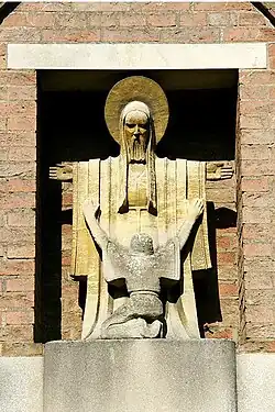 ![]() Portland Stone carving showing St.Thomas kneeling to the risen Christ, by Philip Pape in 1956. St.Thomas' church. | |