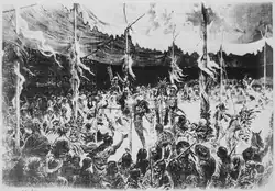 On August 13, there were as many as two thousand lodges of Lakotas, Cheyennes, Arapahos and Kiowas gathered on the Powder River under Sitting Bull, Red Cloud and Crazy horse. After performing an annual sun dance ceremony,[24] a war party was formed with as many as a thousand warriors to go upstream on the Powder to locate and fight their enemy, the Crows.[11] The peace treaty of Fort Laramie of 1868 was still in effect, but Sitting Bull found himself just miles from hundreds of horses and cattle and the railroad surveyors led by John Haydon.[11] Sitting Bull attacked in the early hours of August 14, 1872, but by mid-morning the attack was over. During the battle, Sitting Bull, in a personal show of bravery, took four others with him to within two hundred yards of Baker's forces and sat down with pipe and tobacco. He was untouched by any of the soldiers' shots. In similar manner, Crazy Horse mounted a pony and rode in front of the soldiers only to have his horse shot out from underneath of him. By eight o'clock in the morning, the battle was over. No one in Haydon's party was hurt, and that afternoon Haydon's party surveyed another three miles.[11] Haydon, as a Confederate officer who fought and then had to surrender in an untenable military battle (the battle of Fort Henry, Tennessee, February 6, 1862) realized that his party was probably outnumbered by the Sioux and Cheyenne and led by an individual with a questionable military command ability. Although they continued on until August 18, at time, Haydon, exhausted and apprehensive about the safety of the survey party from raids as well as knowing his work with the railroad was ended, requested Baker to return to Fort Ellis.[11] Sitting Bull's defeat had become a strategic victory.[11] For the Northern Pacific railroad, it was a "...stinging, unmitigated defeat, more damaging than any other event to date." (NPR Asst. Superintendent R. A. Crofton, 1873 letter cited in Lubetkin.) [11]