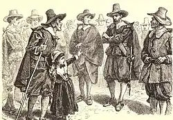 ![]() "Captain Alden Denounced" from an 1878 history, depicting the accusation of John Alden, Jr. during the Salem Witch Trials | |