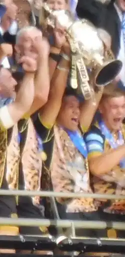 Following Leigh's 12-10 Challenge Cup semi-final victory over St Helens, Asiata was cited but not suspended for alleged cannonball tackles. It was reported that four players suffered injuries following tackles from Asiata with Alex Walmsley and Agnatius Paasi being ruled out for the season. St Helens head coach Paul Wellens accused the RFL of not protecting players following the game.[43][44][45] On 12 August, Asiata captained Leigh Leopards in their Challenge Cup final victory over Hull Kingston Rovers.[46] Asiata played 24 games for Leigh in the 2023 Super League season as the club finished fifth on the table and qualified for the playoffs.[47]