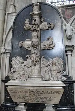 Baker was buried in Westminster Abbey, where a monument to his memory by Francis Bird was erected, for, though his is not one of the great historic names of the navy, he was, in the words of his epitaph, 'a brave, judicious, and experienced officer, a sincere friend, and a true lover of his country.' His nephew, Hercules Baker, a captain in the navy, and who was serving in the Mediterranean at the time of the vice-admiral's death, became, in 1736, treasurer of Greenwich Hospital, and held that office till his death in 1744.[1]