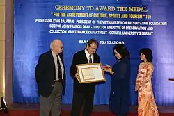 In 2008, he was awarded a medal of appreciation from the Ministry of Culture of Vietnam for his leadership in the restoration of the ancient text collection at the National Library.[12]