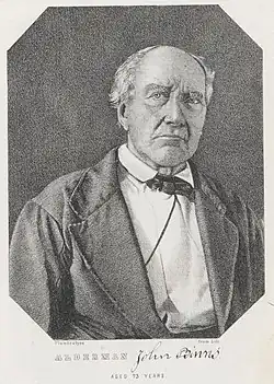 John Binns (22 December 1772 – 16 June 1860) was a Dublin-born American journalist, the son of ironmonger John Binns (who died in a shipwreck aged about 30 in 1774) and his wife Mary Pemberton. A grand-nephew of Irish Patriot politician and member of Dublin Corporation John Binns,[1] he and his older brother Benjamin moved to London and became involved with city's federation of democratic clubs, the London Corresponding Society (LCS). Rising to the society's executive council and chairing its general committee in 1795, Binns pressed the society to mobilise mass support to achieve parliamentary reform (he would later state that revolution was his true object).[2]