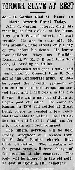 - ^ "Newspaper clipping about John B. Gordon published January 14, 1904". Gordon County, GA Obituaries, Calhoun-Gordon County Library. Digital Library of Georgia. Retrieved June 3, 2016.