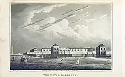 - ^ The Royal Naval Hospital in Great Yarmouth was built in 1809-11 but became surplus to requirements following the end of the Napoleonic Wars. The Admiralty then authorised its conversion into army barracks. By 1826 it had become unoccupied. It later became a military lunatic asylum before becoming a convalescent home, a naval base, and a psychiatric hospital. In 1996 the premises were converted into residential apartments.[15]
