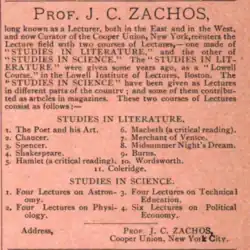 - ^ "Prof. J.C. Zachos". Worcester Daily Spy. Worcester, Mass. March 21, 1898. p. 5, col. 4. Archived from the original on June 13, 2023. Retrieved June 13, 2023.