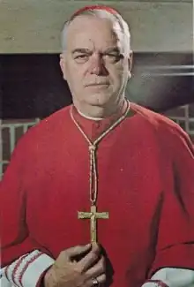 Pope Paul VI created him Cardinal Priest of S. Pio X alla Balduina in the consistory of April 28, 1969. During the 1971 Synod of Bishops in Vatican City, Dearden suggested that the sociological and psychological aspects of the priesthood be investigated.[20] Following the outbreak of the Watergate scandal in 1973, Dearden issued a pastoral letter in which he remarked, "These are difficult days for the country we love," and asked Catholics to observe the first three Fridays in November as days of prayer, penance and fasting in light of the nation's political turmoil.[21] He suffered a serious heart attack in April 1977.[9]