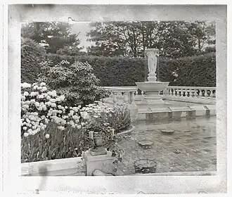 ![]() 1924 LOC image of the fountain at the former Aldred Estate | |