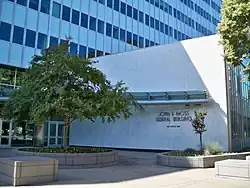 Moss has been noted for his determination in passing the Freedom of Information Act into law.[2] As chairman of the Government Information Subcommittee it took Moss 6 congressional sessions (over 12 years) to get the Freedom of Information Act through Congress successfully.[3] Much of the desire for government transparency stemmed from the Department of Defense and Congressional committees evaluation of the nation's classification system in the late 1950s. They determined that the misuse of government classification of documents was causing insiders to leak documents that were marked "confidential". The Moss Committee took it upon itself to reform confidentiality policy and implement punishments for the overuse of classification by officials and departments.[4] The landmark bill was signed into law by a reluctant Lyndon B. Johnson on July 4, 1966.[5][6]