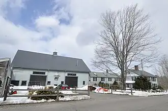 The John Elkins Farmstead is located in rural northeastern Danville, on the north side of Beach Plain Road a short way east of Hillside Terrace. It consists of a main house, with a wing that connects it to a barn; a carriage shed frames the west side of the courtyard formed by these structures, which lie just north of Beach Plain Road. The main house is a 2+1⁄2-story frame structure with a gabled roof and central chimney. Its centered entry is a 20th-century replacement for what was, by architectural analysis, probably a Federal style surround with sidelights and a fanlight. The interior has been carefully reconstructed in the Federal style, retaining original features where possible, and recreating others from documentary photographs. The barn is an unusually large 2+1⁄2-story structure with timber framing, and a two sliding front entrances. It is also accessible from the house via the wing on both floors, an unusual arrangement.[2]