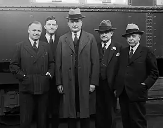 (L-R): J. F. T. O'Connor, Dockweiler, Burton K. Wheeler, Isidore Dockweiler, and Reginaldo Francisco del Valle.