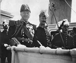 He was appointed a Knight Grand Cross of the Order of the Bath (GCB) in the 1902 Coronation Honours list on 26 June 1902,[101][102] and invested as such by King Edward VII at Buckingham Palace on 24 October 1902.[103]