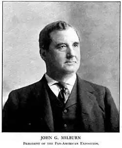Milburn is perhaps best known as the President of the Pan-American Exposition, the 1901 World's Fair in Buffalo.[3] He prepared a suite in his house to host President William McKinley, who was coming to the Exposition. After the president was fatally shot by anarchist Leon Czolgosz at the Exposition on September 6, 1901, he was treated at the hospital and brought back to Milburn's home. He died there eight days later.[4]