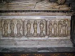 Giffard and his wives were interred in the parish church of St. Mary and St. Chad in Brewood. An impressive alabaster tomb was later installed, with part-gilded effigies of all three.