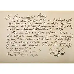 - "First Scots Bible set to make £1,200". The Herald. 13 May 2017.