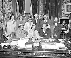 Goldmark was re-elected three times to the legislature, in 1956, 1958 and 1960, by a margin of three-to-two.[19][5] He ran to be speaker of the house in 1960 but withdrew to support John L. O'Brien, who appointed him as a floor lieutenant.[1] The same year, he was a keynote speaker at a campaign meeting in Seattle for John F. Kennedy during his presidential campaign and was a delegate at the 1960 Democratic National Convention, again voting for Stevenson.[1][20] He was chair of the House ways and means committee, becoming the most powerful House Democrat besides the speaker, and the legislative budget committee in 1961.[1][13]