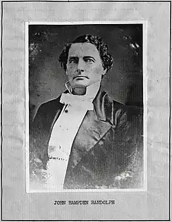 He was born in Lunenburg County, Virginia.[1] Randolph moved to Mississippi when he was six. His father was U.S. District Court judge for the district of Mississippi Peter Randolph.[2] They lived on a cotton plantation near Woodville, the county seat of Wilkinson County, in the old Natchez District. Little is known about his education except he studied for a time under Lucy Bakewell Audubon, who earned income to support the John James Audubon family by running an academy for the children of wealthy planters.[1] In the 1830s Randolph seems to have had business interests in Madison Parish, Louisiana; a local historian wrote that "he must have been very active in selling and buying enslaved people as his name appears in a large number of the transactions" of the first parish record book.[3]