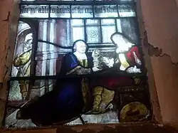 In 1885, the Harrison Memorial Window was added to the church, painted in 1885 by Burlison and Grylls. The lower half depicts scenes from John Harrison's life. From bottom left: Harrison gives a tankard of coins to the imprisoned King Charles I; the construction of St John's Church; Harrison praying in his study; Harrison helps an old woman into his almshouse; Harrison sets up a market cross on Briggate in Leeds.