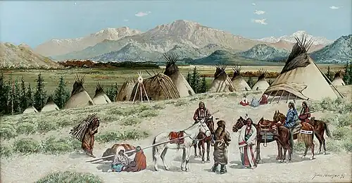 John Hauser (January 30, 1859 – October 6, 1913) was an American painter best known for his portraits of Native Americans and depictions of various aspects of their lives. He had academic training at art schools in Europe, including the Royal Academy of Fine Arts in Munich. In the United States, he became fascinated with Native Americans of the Southwest and West, whom he painted for the rest of his life. In 1893 he traveled with the American artist Joseph Henry Sharp to Taos, New Mexico, and other areas of that and nearby states. He did so much work at the Pine Ridge Reservation in South Dakota that he and his wife were adopted by the Lakota Sioux as members of their nation.