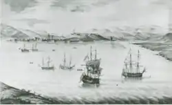 In early 1758, Bastide was appointed chief engineer of the expedition to capture Louisbourg, this event possibly coinciding with his promotion to colonel on 9 January. He had Major Patrick MacKellar as his deputy and a further 8 engineer officers under his command. On arrival in Halifax in early May, Bastide prepared six blockhouses of squared timber with the timbers marked so that they could be erected within a few hours upon arrival at Louisbourg.[16] These were designed to have an upper platform with musket-proof parapets on which small cannon could be mounted and were intended as "end rideouts for the protection of the camp".