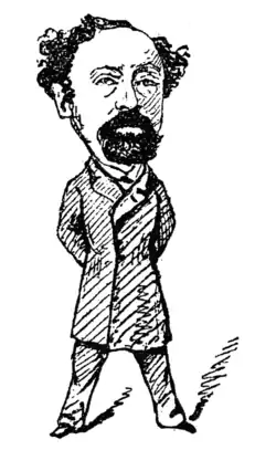 Hollingshead started his journalism career in 1854 under the tutelage of Charles Dickens at Household Words magazine and then under W. M. Thackeray at Cornhill Magazine.[5] In 1861, he acted as the "special correspondent" for The Morning Post during the London famine. He also wrote essays, short stories and dramatic criticism.[6] Beginning in 1864, and for several years thereafter, he contributed to Punch magazine, mostly writing on political topics related to social reform.[7] He advocated the principles of Mill and Jeremy Bentham. One of his best-known essays was an 1857 piece called "The City of Unlimited Paper", which became famous during the monetary panic of 1857.[1] In the 1860s he was on the staff of Good Words under Norman Macleod as editor.[8]