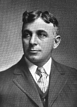 John J. Michels was born in Fond du Lac County, Wisconsin, the son of Michel and Katherine (Misen) Michels.[3] In 1880, the family moved to Houghton, where the elder Michels worked as a carpenter. John J. Michels attended school until he was 12, then began work in a furniture store. He worked in a mine and a stamping mill, and when he was 17 began carpentering at the Huron Mine. A few years later, he became a contractor and builder, and was responsible for a number of large public and commercial buildings in the area, including Douglas Public School, the Houghton Odd Fellows Hall, Houghton Presbyterian Church, the David Haas Block,[3] St. Ignatius School, Houghton High School, Dollar Bay schools, the Houghton Public Library, the Houghton Flour Mill, the Copper Range Railroad depot at Painesdale, and the Isle Royale School in Portage Township.[2] Michels was also a village trustee and a member of the Houghton County Road Commission.[2]