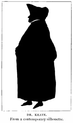 Keate was made a canon of the eighth stall of Windsor in 1820. He died at Hartley Wespall, Hampshire, of which parish he had been rector since 1824.[3]