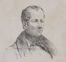 In the days leading to Knatchbull's execution on 13 February 1844 a printing office in King Street advertised a lithographic print of sketches of both John Knatchbull and his victim, Ellen Jamieson, on sale for one shilling. The sketch of the murderer by the artist C. Rodius was claimed to be "the only correct likeness of Knatchbull now published".[52] At least one other printed likeness of Knatchbull was also being sold in Sydney at the time. A writer for the Sydney Morning Herald commented: "To preserve the portraits of the virtuous is an excellent way of keeping them in remembrance, but we do not approve of any thing likely to perpetuate the memory of such a man as Knatchbull; the sooner he is forgotten the better".[53]
