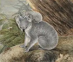 Koala and young, 1803, by John William Lewin
