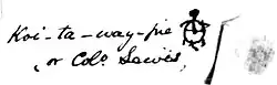 Lewis's Shawnee name was Quatawapea, which was spelled in a variety of ways, including Quitewepea,[4] and has been translated as "the Man Who Swims Below and Above the Water"[3] and "Man on the Water Who Sinks and Rises Again."[5] Shawnees of Lewis's era belonged to one of five tribal divisions: Kispoko, Chalahgawtha (Chillicothe), Mekoche, Pekowi (Piqua), and Hathawekela. Lewis probably belonged to the Piqua division.[1] In addition, each Shawnee belonged to a clan that was named after a totemic animal. Lewis belonged to the Turtle clan.[5]