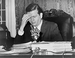 Lindsay then launched a brief and unsuccessful bid for the 1972 Democratic presidential nomination. He attracted positive media attention and was a successful fundraiser. Lindsay did well in the early Arizona caucus, coming in second place[54] behind Edmund Muskie of Maine and ahead of eventual nominee George McGovern of South Dakota. Then in the March 14 Florida primary, he placed a weak fifth place, behind George Wallace of Alabama, Muskie, Hubert Humphrey of Minnesota, and Scoop Jackson of Washington (though he did edge out McGovern).[55] Among his difficulties was New York City's worsening problems, which Lindsay was accused of neglecting; a band of protesters from Forest Hills, Queens, who were opposed to his support for a low income housing project in their neighborhood, followed Lindsay around his aborted campaign itinerary to jeer and heckle him.[56][57]
