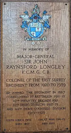 - ^ a b c Major General Sir John Raynsford Longley KCMG CB 1920–39 Archived 30 December 2021 at the Wayback Machine Queen's Royal Surreys website