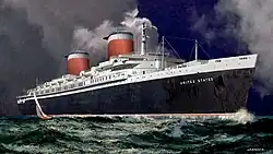 Franklin left the Army in November 1945 and became president of United States Lines once more. He negotiated the repurchase of the ocean liner SS America from the US government, and the acquisition and construction of a fleet of large, modern cargo ships. He oversaw the construction of the SS United States, a 53,330-gross-register-ton (151,000 m3) liner that broke the transatlantic speed record on its maiden voyage in July 1952 with a 35.59-knot (65.91 km/h) outbound crossing and a 34.51-knot (63.91 km/h) return crossing.[3] He forged a good working relationship with Joseph Curran, the president of the National Maritime Union, who had worked for him as a bosun in the 1930s.[3]
