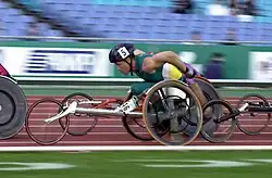 He participated in the demonstration wheelchair 1500 m event at the 2000 Sydney Olympics, but crashed 1,150 metres (3,770 ft) into the race.[12] He competed as a T54 athlete at that year's Paralympics, where he was part of the Australian team in the 4x400 m relay, reached the semi-final of the 1500 m event, was disqualified in the semi-final of the 5,000 m event after a crash for "obstruction of the track", came ninth in the 10,000 m event, and was the best-placed Australian man in the marathon in his classification, finishing twelfth.[22][23][24][25][26]