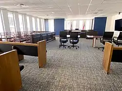 After selling its Midtown Atlanta building in 2020,[15] the Law School relocated to Peachtree Center in Downtown Atlanta.[16] After a multi-floor construction project, the Law School took possession of its new campus on August 6, 2021. It is now housed in One Marquis Tower and comprises almost 60,000 square feet of classroom and office space, including a law library and courtroom. The construction project was completed in less than 24 weeks.[17]