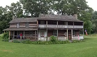 John Mathias House, also known as the Mathias Homestead, is a historic home located at Mathias, Hardy County, West Virginia. It consists of two sections, one built about 1797 and the second about 1825. The two hewn-log sections are joined by a frame "dog trot," or what has been referred to locally as the "entry." The older section is two stories with a double porch and lightly taller than the newer section. It was home to the Mathias family for 165 years before being deeded to the Mathias Civic Center Association in 1974.[2]