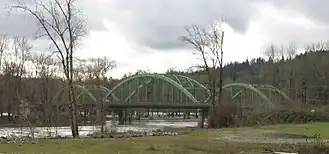 The John McLoughlin Bridge is a tied-arch bridge that spans the Clackamas River between Oregon City and Gladstone, Oregon, in the northwest United States. It was designed by Conde McCullough, and named for Dr. John McLoughlin.