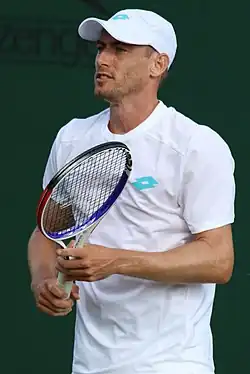 In February 2015, Millman was forced to retire in round 1 of the Burnie Challenger with a lower back concern.[21] He returned to complete in the Kyoto Challenger where he reached the final but lost 3–6, 6–3, 3–6 against Michał Przysiężny. Millman lost in round of qualifying at the French Open, then played Vicenza Challenger where he was seeded 6th and lost in the final to Íñigo Cervantes. In June, Millman secured his first Grand Slam main draw entry via qualifying for the first time in his career at Wimbledon.[22] Millman defeated 19th seed Tommy Robredo in round 1,[23] before losing to Marcos Baghdatis in round two, despite having a 2 sets to 0 lead.[24] This result increased Millman's ranking and he reached the top 100 for the first time in July 2015. In August, Millman won his sixth and seventh Challenger titles in Kentucky and Aptos.