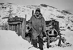 Miscovich in Flat with the family's Caterpillar tractor during spring stripping, circa 1940 | |