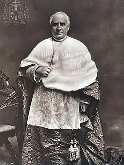 On November 18, 1895, Farley was appointed auxiliary bishop of New York and titular bishop of Zeugma in Syria by Leo XIII. He received his episcopal consecration on the following December 21 from Archbishop Michael Corrigan, with Bishops Charles Edward McDonnell and Henry Gabriels serving as co-consecrators, at St. Patrick's Cathedral.[7] Farley became Apostolic Administrator of the archdiocese upon the death of Archbishop Corrigan on May 5, 1902