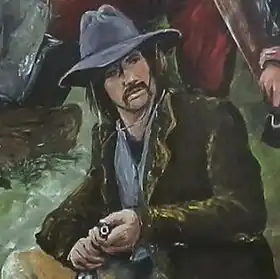 An artist's impression of the bushranger, John O'Meally (detail from the 'Gardiner's Gang' mural in Chesher-street, Eugowra, NSW).