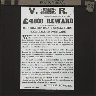 102. ^ Four Thousand Pounds Reward, New South Wales Government Gazette (Sydney), 26 October 1863 (Issue No. 207 Supplement), page 2313.