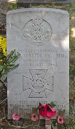 Lieutenant John O'Neill VC MM (also spelt O'Niell) (10 February 1897 − 16 October 1942) was a British Army officer and a Scottish recipient of the Victoria Cross (VC), the highest and most prestigious award for gallantry in the face of the enemy that can be awarded to British and Commonwealth forces.